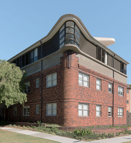 Located close to Bondi Beach, this project involved a Penthouse addition to a classic Art Deco style apartment block built in the last 1920s. The penthouse’s defining feature is a bow window in the corner of the building facing the intersection of the street.